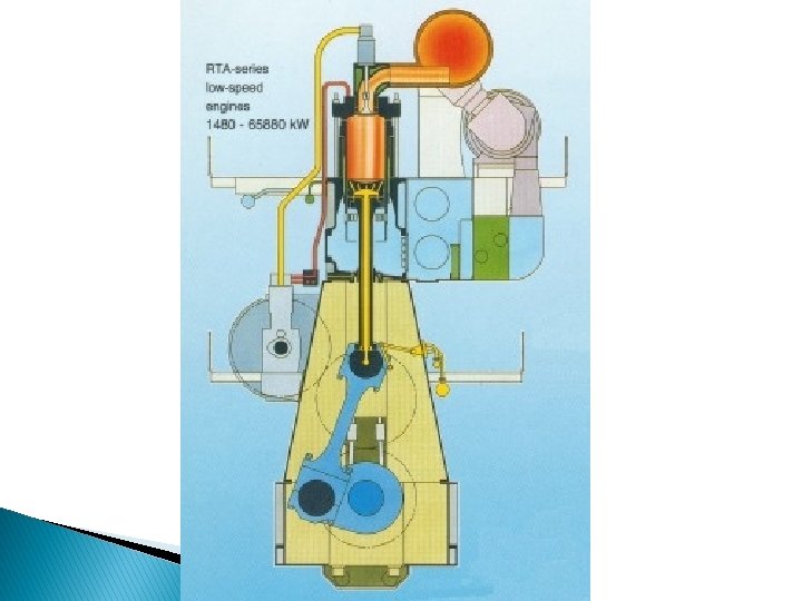 Cylinder lubrication ◦ Large slow-speed diesel engines are provided with a separate lubrication system for the cylinder liners. Oil is injected between the liner and the piston by mechanical lubricators which supply their individual cylinder. A special type of oil is used which is not recovered. As well as lubricating, it assists in forming a gas seal and contains additives which clean the cylinder liner.