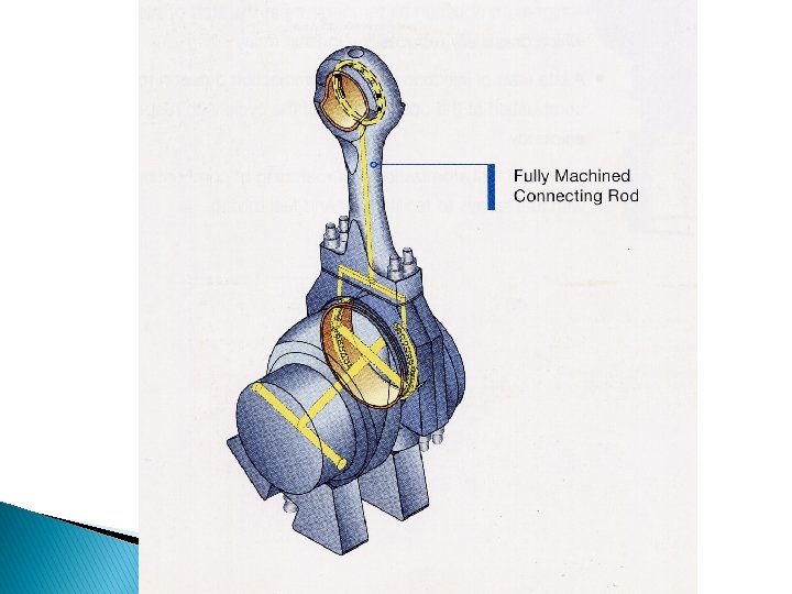 The branch pipe for a particular cylinder may feed the main bearing, for instance. Some of this oil will pass along a drilled passage in the crankshaft to the bottom end bearing and then up a drilled passage in the connecting rod to the gudgeon pin or crosshead bearing.
