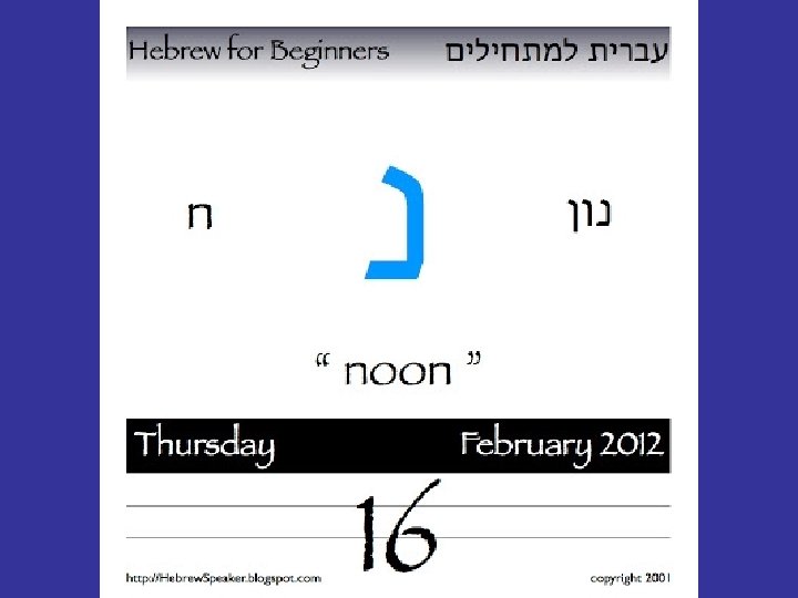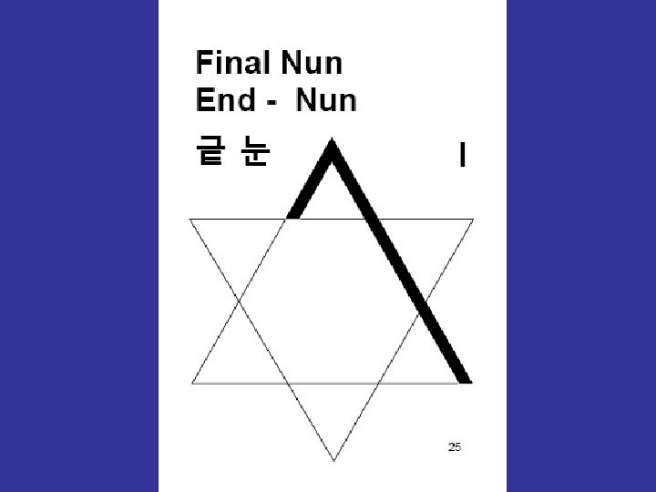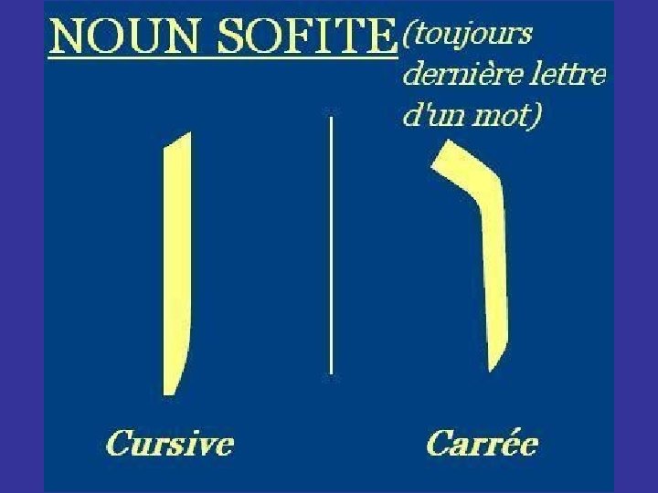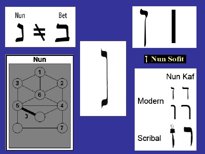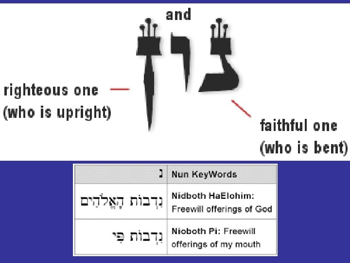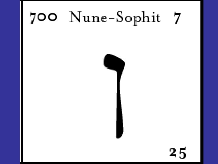 La letra nun • Según Autioth de R. Akiva, la forma de la nun representa a alguien que casi se cae, levanta la parte superior del tronco (desde la cadera) y envía una mirada hacia la mem de Melekh (el Rey), a quien lanza una llamada de auxilio.