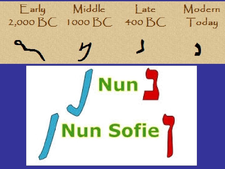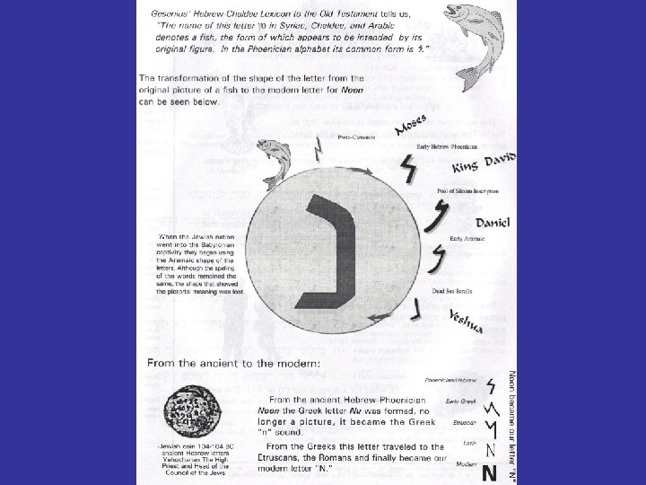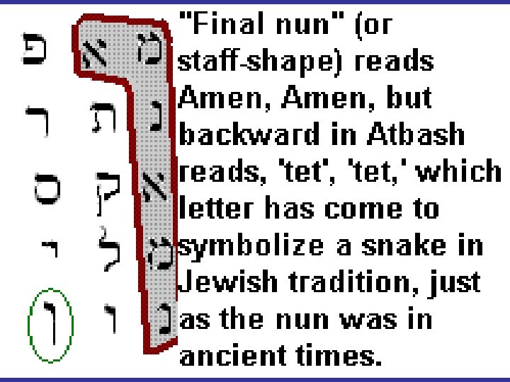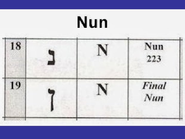Nun es la letra “crística” por excelencia. A despecho de interpretaciones religiosas, el pez era considerado como símbolo de vida y actividad. . Dos curiosas nun invertidas, que aparecen en un pasaje del Libro de los Números (en toda la Biblia hay nueve de estas letras).