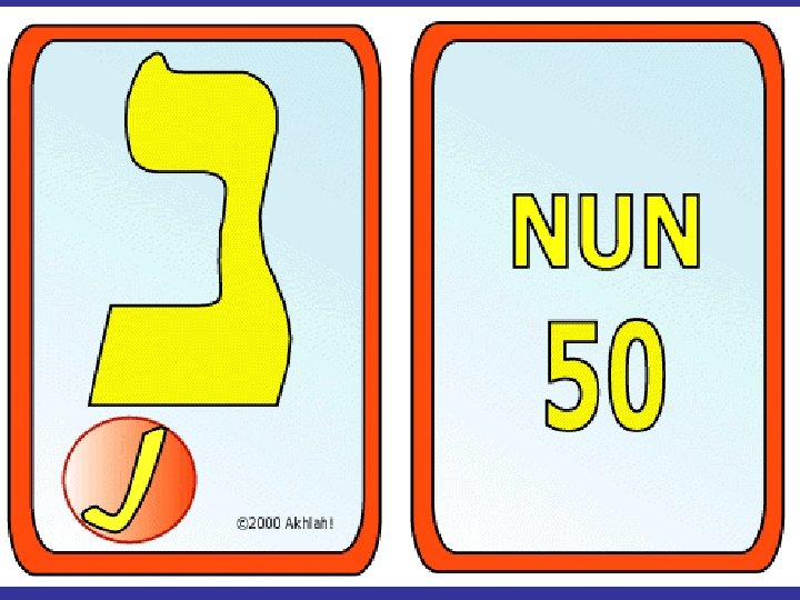 La nun, escrita en forma manual, tiene aproximadamente la mitad del tamaño de la caf. La versión en cursiva es similar a la letra J (sin el punto). Se considera que el número 50 de la nun representa libertad y plenitud de vida.