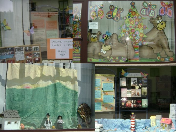 Ø Ø Izložbe knjiga (uz Mjesec knjige, Dan dječje knjige, Dan hrvatske knjige, Dana hrvatskog jezika. . . ) Izložbeni panoi- obljetnice/gostovanja književnika, nove knjige, dječji likovni radovi nastali na kreativnim radionicama, važniji datumi i događaji u kulturi, uređenje izloga knjižnice (nagrada Grada Delnica za najljepši izlog- 2009. i 2010. g. )