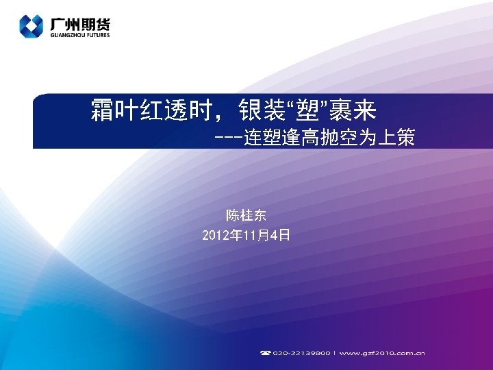 广州期货有限公司研究部 研究员: 陈桂东 邮箱:danielchan 28@163. com 电话: 020 -22139824/13560238575