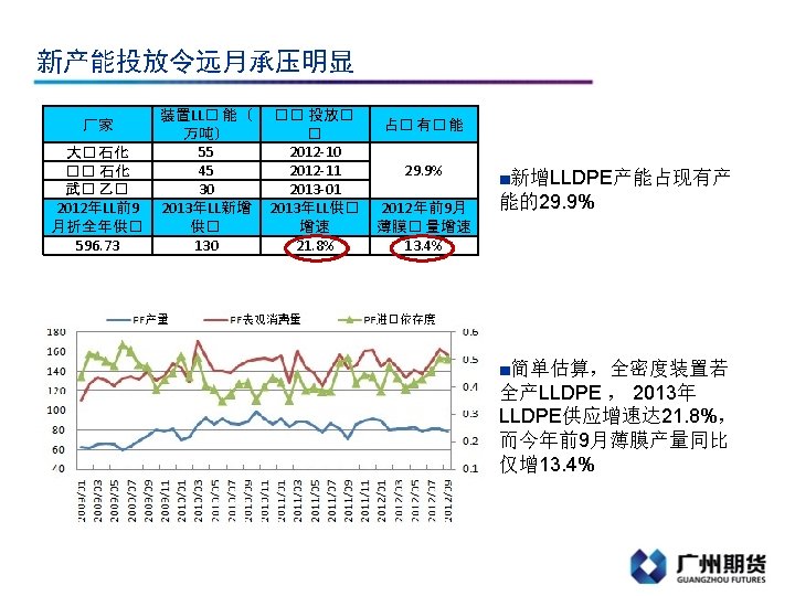 基差 14000 1500 60000 12000 1000 50000 10000 500 40000 8000 0 30000 6000 -500 20000 4000 -10000 2000 -1500 0 0 -2000 2009. 04 2009. 06 2009. 08 2009. 10 2009. 12 2010. 04 2010. 06 2010. 08 2010. 10 2010. 12 2011. 04 2011. 06 2011. 08 2011. 10 2011. 12 2012. 04 2012. 06 2012. 08 2010. 11 2010. 12 2011. 01 2011. 02 2011. 03 2011. 04 2011. 05 2011. 06 2011. 07 2011. 08 2011. 09 2011. 10 2011. 11 2011. 12 2012. 01 2012. 02 2012. 03 2012. 04 2012. 05 2012. 06 2012. 07 2012. 08 2012. 09 广州期货观点 基本面偏弱决定连塑中线继续下行 塑料指数 �塑注册��(左) 主力合�收�价(右) 16000 14000 12000 10000 8000 6000 4000 2000 0