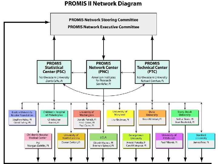 PROMIS-1 Network: 2004 -2009 ● University of Washington Northwestern ♥ ● Stanford ● Stoney. Brook ● University of Pittsburgh ● NIH UNC –Chapel Hill ●● Duke University* ♥Coordinating Center