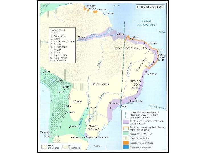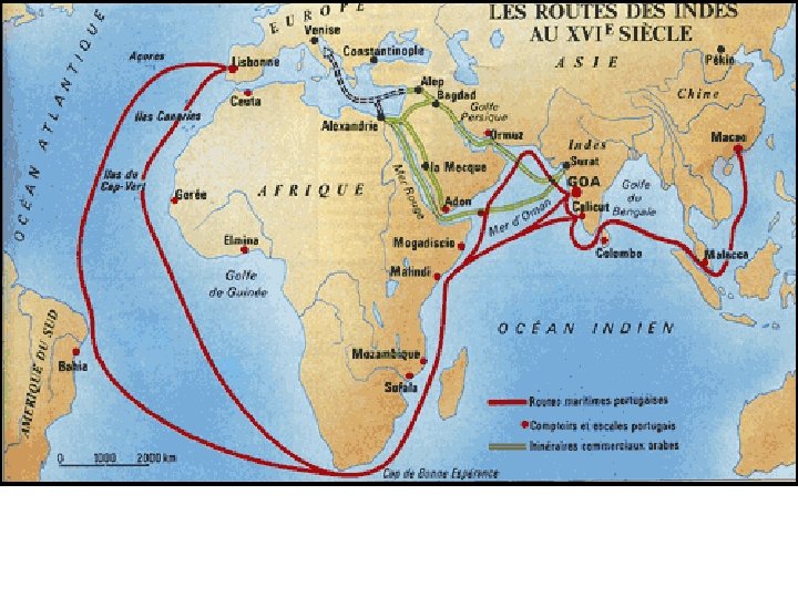 1500 : Cabral découvre le Brésil ; début de la traite négrière 1501 : Comptoirs à Calicut et Cochin 1505 : Création de l’Estado da India 1506 : Socotora 1509 : A Diu, les Portugais (appelés par le Gujarat) détruisent la flotte égyptienne (soutenue par les Ottomans et les Vénitiens) 1510 : Goa (capitale de L’Estado da India en 1530) 1415 -1641 : L’Empire portugais des sept mers