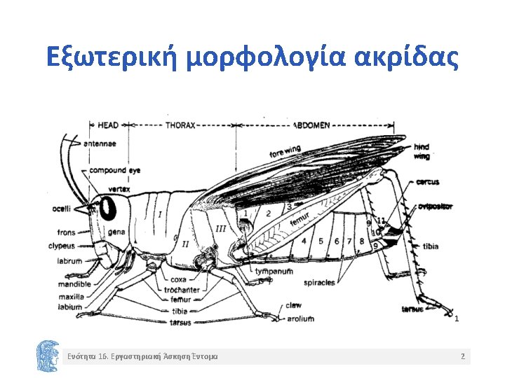 Σημείωμα Χρήσης Έργων Τρίτων 3/6 Εικόνα 11: Earthlife Web. All materials contained on this site are protected by United States copyright law and may not be reproduced, distributed, transmitted, displayed, published or broadcast without the prior written permission of Earthlife. net or in the case of third party materials, the owner of that content. Σύνδεσμος: http: //www. earthlife. net/insects/anatthorax. html. Πηγή: http: //www. earthlife. net. Εικόνα 12: Copyright 1977 Ο. W. Richards & R. G. Davies. Πηγή: Imm’s General Textbook of Entomology, 10 th Edition, Vol. 1. Εικόνα 13: Copyright © 2010 dragonflywoman. wordpress. com. Thedragonflywoman. com is licensed under a Creative Commons Attribution-Noncommercial-No Derivative Works 3. 0 United States License. Σύνδεσμος: http: //thedragonflywoman. com/tag/morphology/. Πηγή: http: //thedragonflywoman. com/ Εικόνα 14: © Copyright 2004 - 2015 D G Mackean & Ian Mackean. All rights reserved. Biology Teaching and Learning Resources. Educational Materials by D G Mackean. Σύνδεσμος: http: //www. biology-resources. com/drawing-bee-leg. html. Πηγή: http: //www. biologyresources. com. Ενότητα 16. Εργαστηριακή Άσκηση Έντομα 32