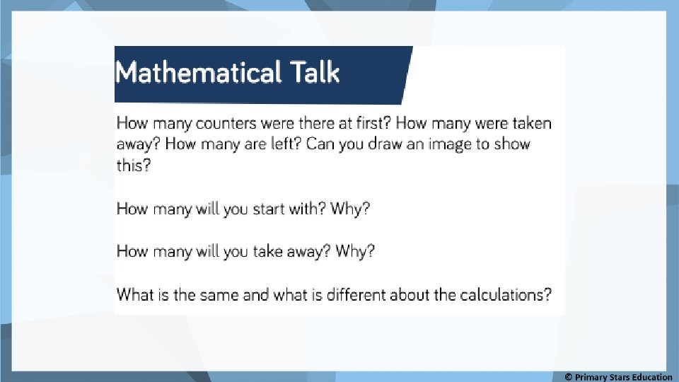 Fluency Use the number track to help calculate: 10 – 3 1 2 3 4 5 6 10 – 3 = 7 7 8 9 10