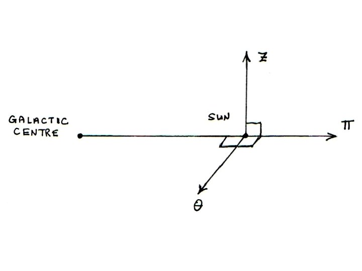16. The Solar Motion The Fundamental Standard of Rest. The Galactic centre defines the fundamental reference frame for the Galaxy. Its distance is known fairly well, and its direction is well established from radio and IR studies, and is coincident with Sgr A*. The velocities of objects in the solar neighbourhood are usually defined in terms of their components relative to the Galactic plane and the direction of the Galactic centre, in particular: Π is velocity measured positively towards the Galactic anticentre, i. e. (l, b) = (180º, 0º). It is –U in some sources. Θ is velocity measured positively in the direction of the Sun’s orbital motion about the Galactic centre, i. e. (l, b) = (90º, 0º). It is V in some sources. Z is velocity measured in a positive sense towards the north Galactic pole (NGP), i. e. (l, b) = (any, +90º). It is W in some sources.