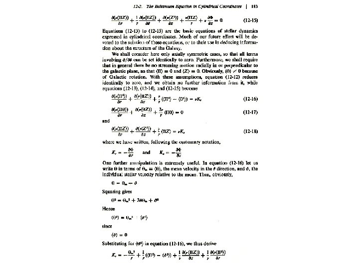 Mihalas demonstrates how the equations can be rearranged to permit least squares solutions for X , Y , and Z from radial velocities and X /K, Y /K, and Z /K from proper motions. Solutions involve the fact that the velocity components X*, Y*, and Z* for a group of stars must average to zero because they are measured relative to the LSR. The components X*, Y*, and Z* of dx/dt, dy/dt, and dz/dt can therefore be eliminated from the equations when averaged over a large enough group of stars that are randomly distributed across the celestial sphere. Likewise, any averages of terms involving X*, Y*, and Z* must be equated to zero.
