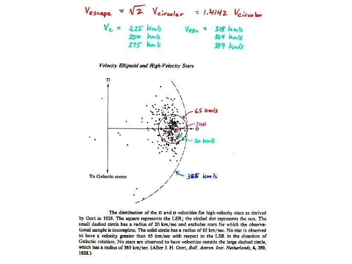 Methods of Calculating 0. The parameter 0 = c is the circular velocity at the Sun’s distance R 0 from the Galactic centre. Most current estimates for it concentrate between values of 220 km/s and 250 km/s. There are several methods available for deriving 0 , namely: i. by determining the peculiar motion of the LSR with respect to the halo population. Since even halo stars are in orbit about the Galactic centre, however, the value of 0 derived in this manner may be a lower limit. The results of such an analysis yield a value of 0 ≥ 220 km/s. ii. by extrapolating the <V*> versus σΠ 2 curve to its extreme values for globular clusters. This technique also has uncertainties owing to the unknown rate of rotation for the globular cluster system about the Galactic centre, as well as to the possible existence of two distinct groups of globulars. An analysis of this type gives a value of 0 ≥ 230 km/s.