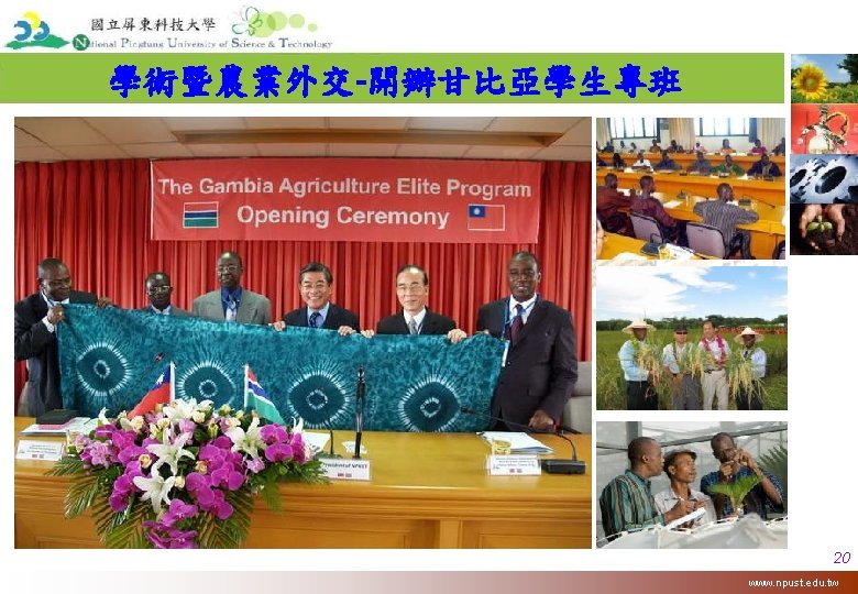 陽光 健康 屏科大 A university of 86 years Featured on Tropical Agriculture Moves forward to Become a centennial University! 53 www. npust. edu. tw