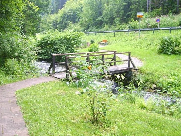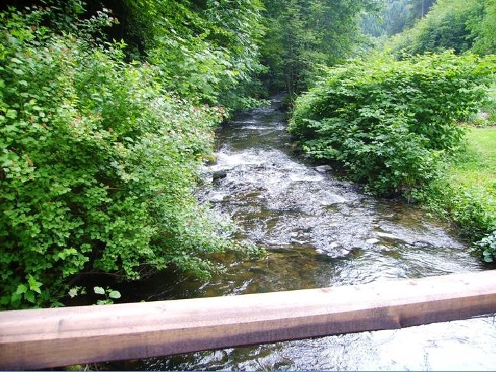 Ein schöner Bach fließt zu Tale … selbst Forellen kann man hier noch/wieder finden und auch füttern … bei der Sauberkeit des Wassers sind sicherlich / oder wieder auch noch Flusskrebse zu finden.