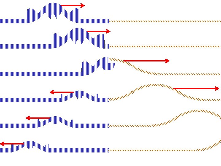Answers to 3 previous slides 3) smaller speed than along the lighter cord. Speed of mechanical waves, Here the tension remains unchanged, but the density m increases. 3) smaller wavelength than along the lighter cord. Slower speed means the waveforms will bunch up as they pass the juncture. 2) with the same frequency as along the lighter cord.