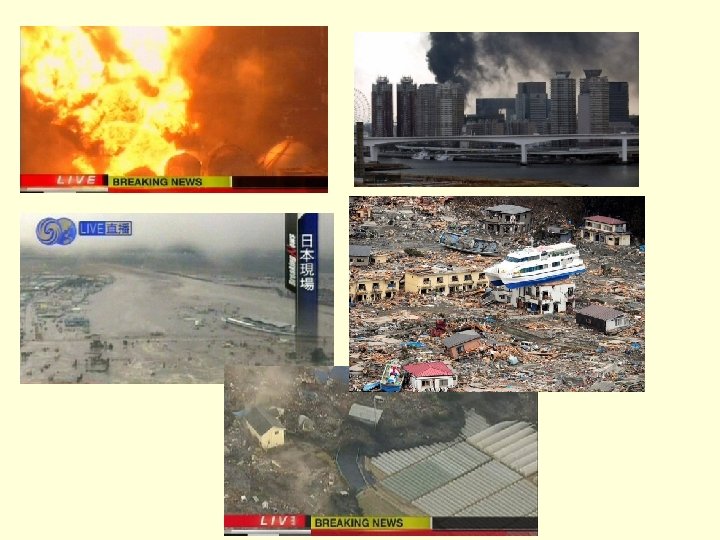 SUDNJI DAN U ZEMLJI IZLAZEĆEG SUNCA Potres magnitude 8, 9 stupnjeva po Richteru pogodio je Japan (11. 3. 2011. ) Tsunami nosi sve pred sobom Agencija Kyodo javlja da ima više od tisuću žrtava Zemljina os pomaknula se za gotovo 25 centimetara Ovo je zadnji u nizu potresa u toj regiji i najsnažniji u posljednjih 140 godina. Osjetio se i u Pekingu koji je udaljen 2500 kilometara. Najrazorniji potres ikad zabilježen je onaj u Čileu 1960. godine s magnitudom od 9, 5 stupnjeva.