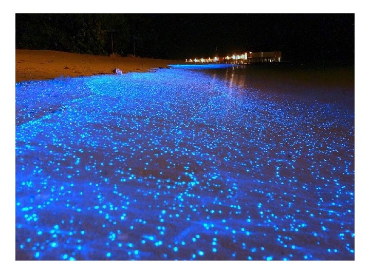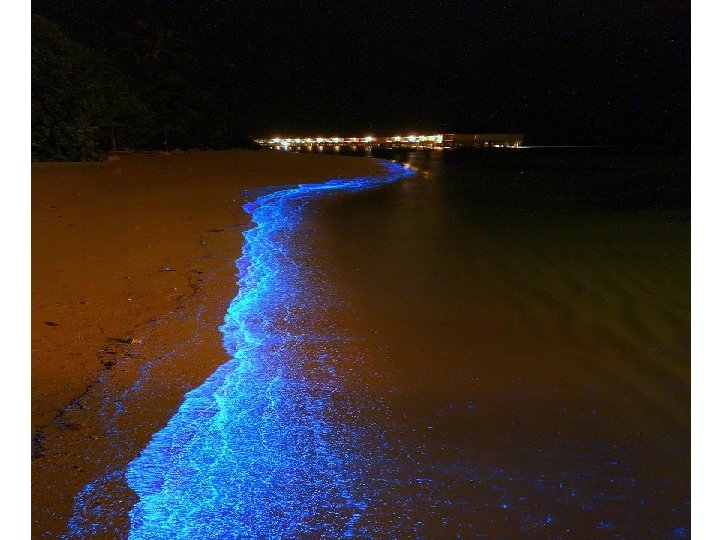 Playa en las Islas Maldivas que asemeja a un cielo estrellado Las luces de esta playa en las Maldivas son causadas por el fitoplancton microscópico bioluminiscente, el cual se ilumina cuando son mecidos por las olas.