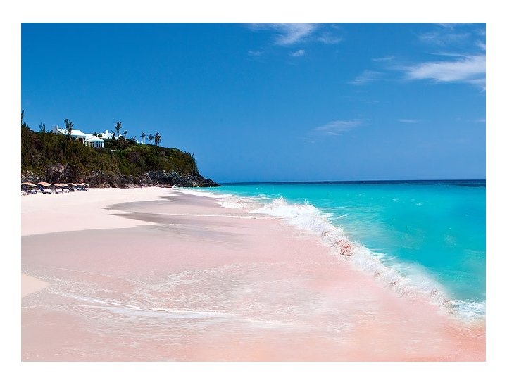 Playa de Arena Rosa, en Bahamas La idílica arena rosada de las Islas Bahamas es pigmentada por los restos corales que son estrellados y enterrados en pequeños pedazos por el oleaje.