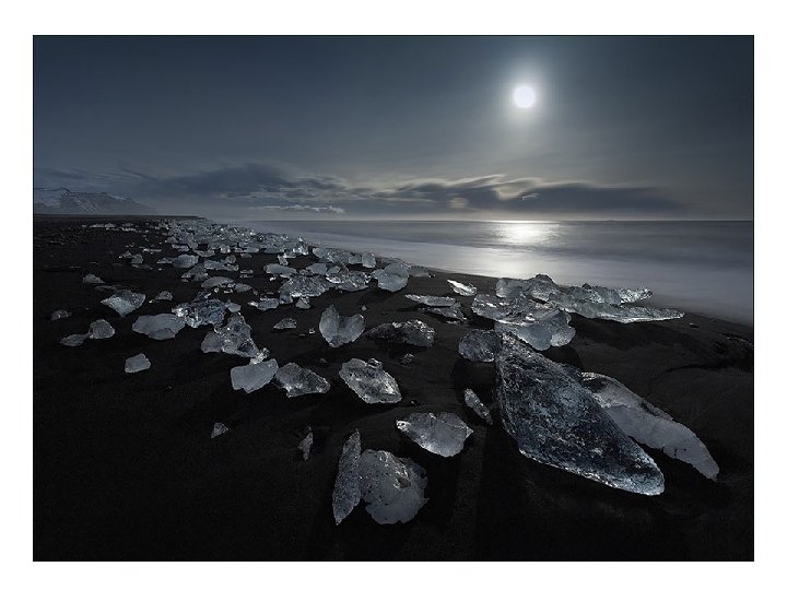 Jokulsarlon, Islandia La arena volcánica negra de esta playa islandesa contrasta maravillosamente con los pedazos blancos y cristalinos de hielo.