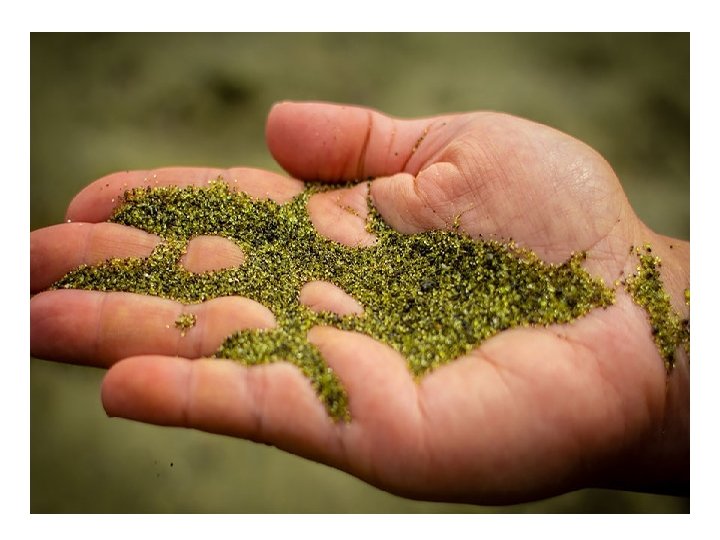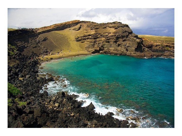 Playa de Arena Verde Papakōlea, en Hawaii La arena verde en esta playa en Hawai es causada por el mineral olivino, el cual es formado por la lava al enfriarse en el mar.