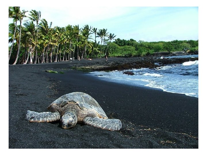 Playa de Arena Negra Punaluu, en Hawaii La arena negra en Punaluu está formada por lava basáltica, la cual explota en erupción y fluye hacia el mar, en donde se enfría rápidamente.