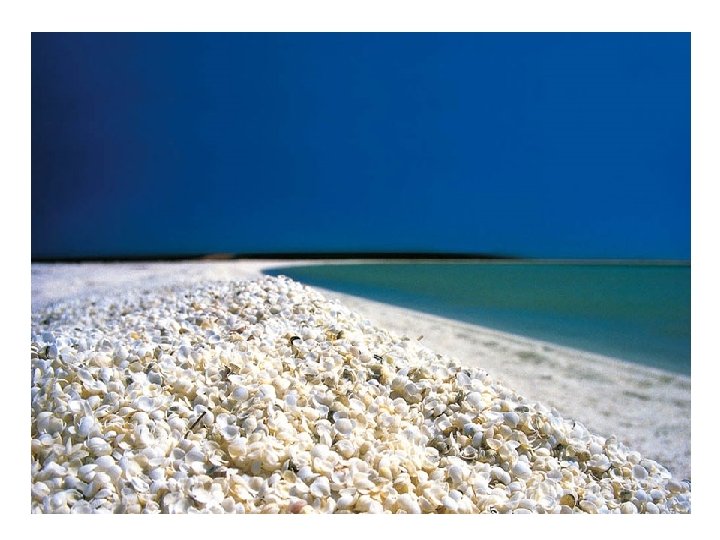 Playa Concha, Bahía Tiburón, Australia El agua cerca de Shell Beach (Playa Concha) en Australia es tan salina que los berberechos han sido capaz de proliferar sin control a pesar de sus depredadores naturales. Es esta abundancia de moluscos que inunda las playas con sus conchas.