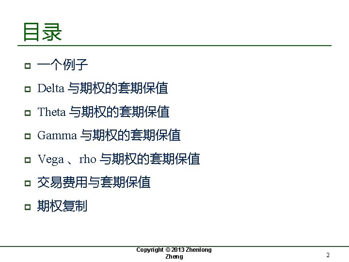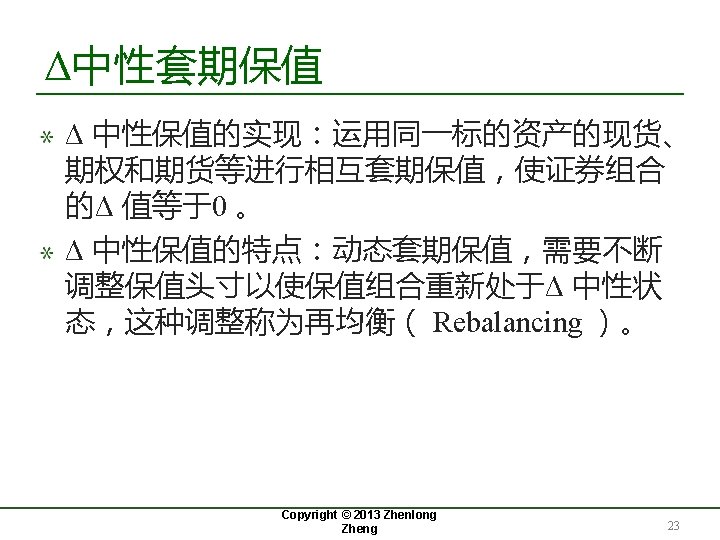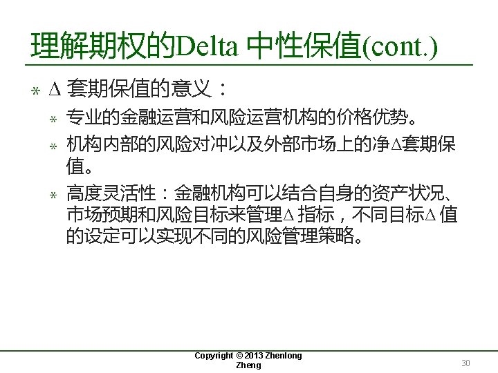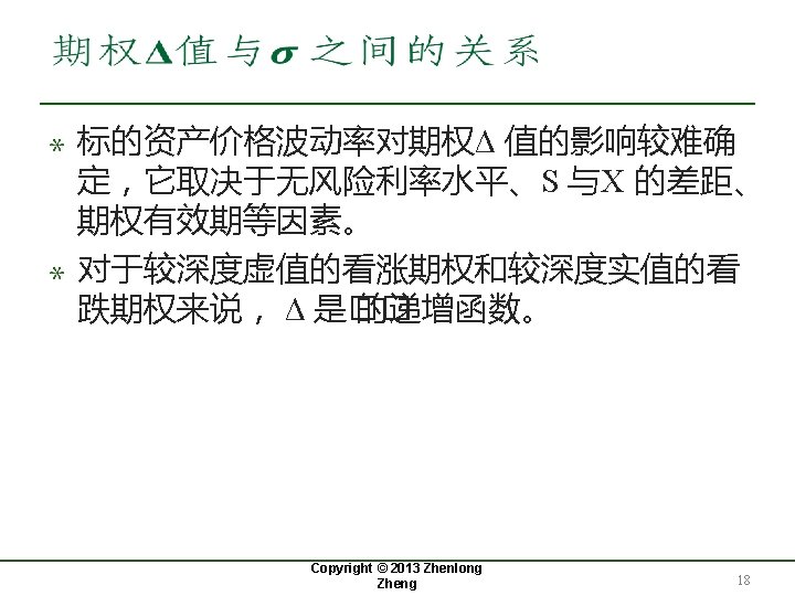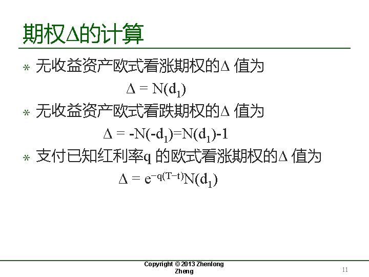 期权的Delta(Δ) Copyright © 2013 Zhenlong Zheng 9