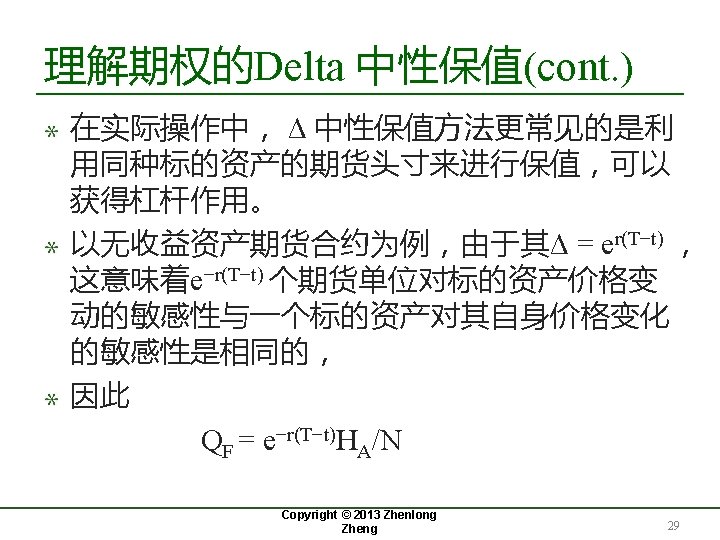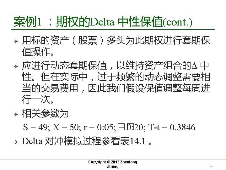 18. 2 Delta 与期权的套期保值 Copyright © 2013 Zhenlong Zheng 8