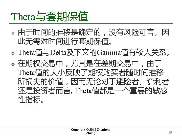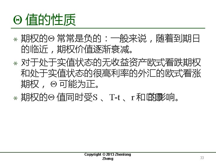 18. 3 Theta与期权的套期保值 Copyright © 2013 Zhenlong Zheng 31