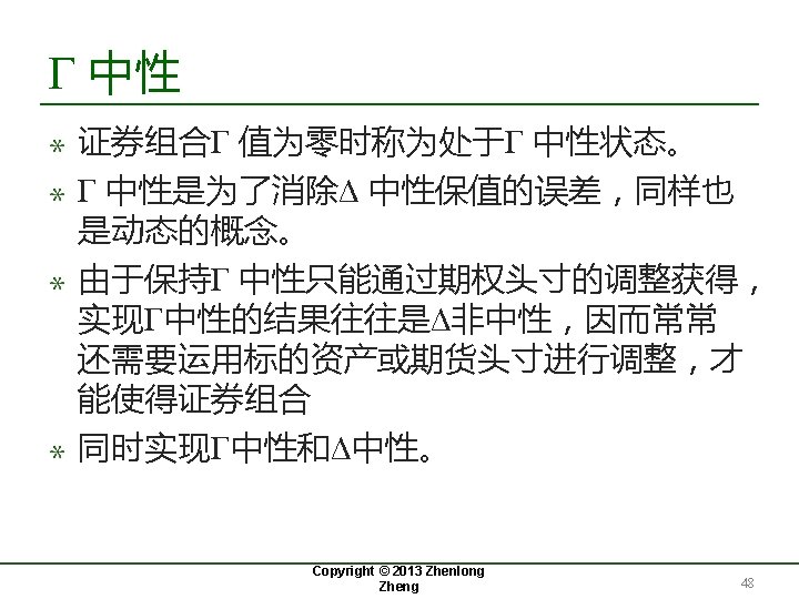 证券组合的Γ 值 Copyright © 2013 Zhenlong Zheng 47