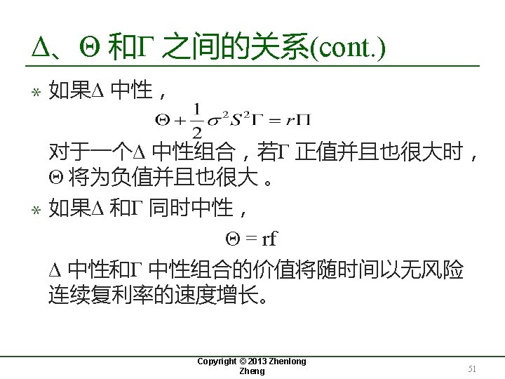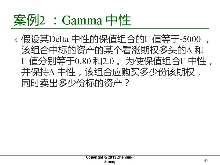 案例2 :Gamma 中性(cont. ) Copyright © 2013 Zhenlong Zheng 50