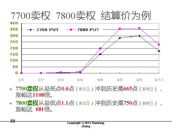 平价期权 c/S与波动率和期限的关系 Copyright © 2013 Zhenlong Zheng 60