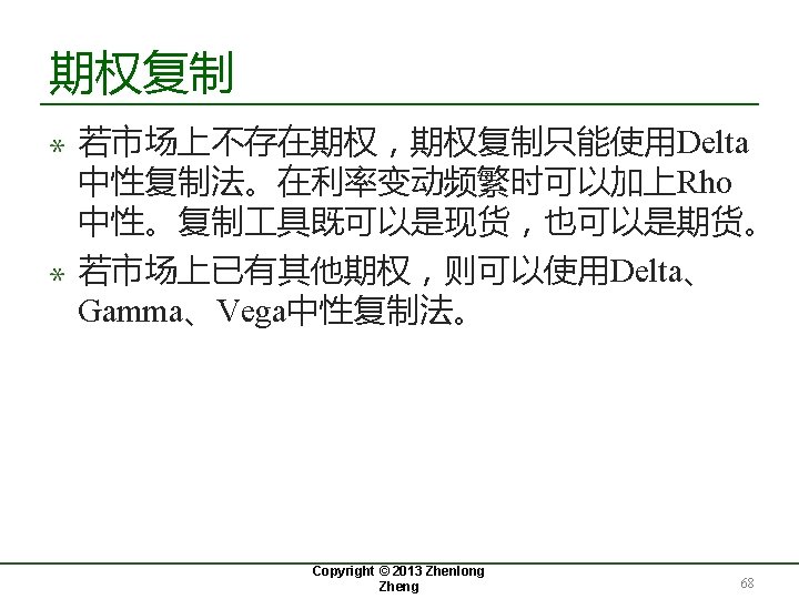 18. 6 期权复制 Copyright © 2013 Zhenlong Zheng 67