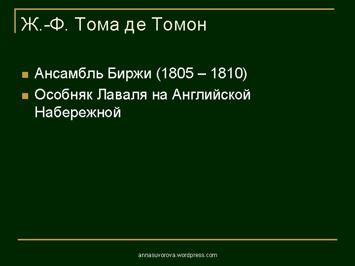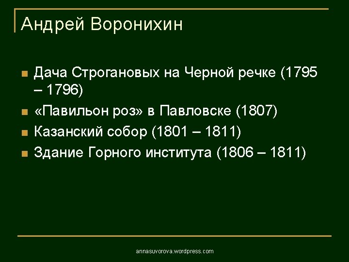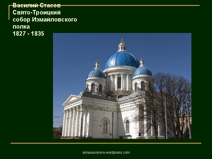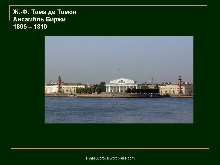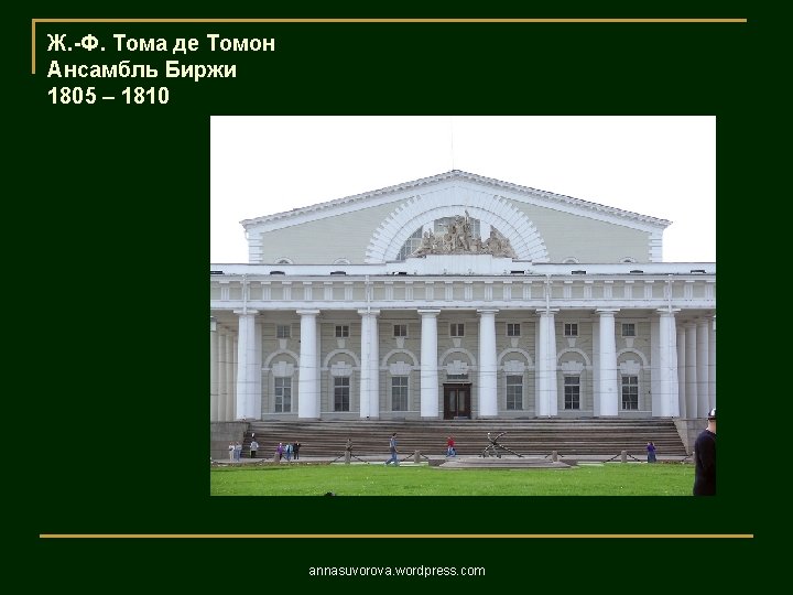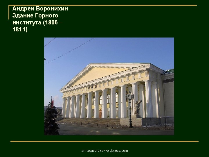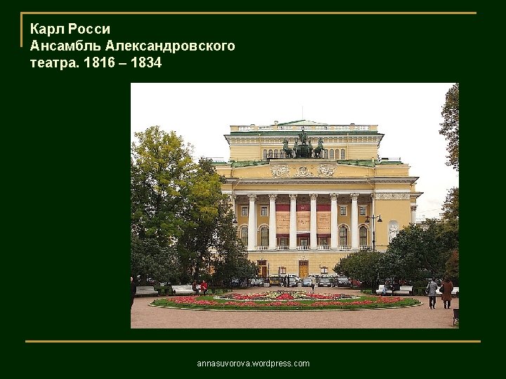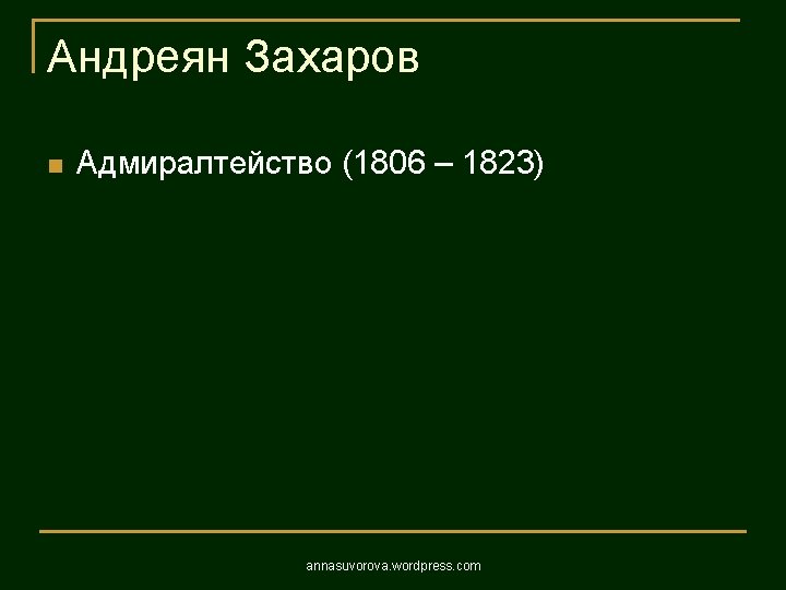 1806 1823 annasuvorova wordpress com 1806 1823 annasuvorova Slides: 37 Download presentation Андреян Захаров Адмиралтейство 1806 – 1823 annasuvorova. wordpress. com Андреян Захаров Адмиралтейство 1806 – 1823 annasuvorova. wordpress. com Андреян Захаров Адмиралтейство 1806 – 1823 annasuvorova. wordpress. com Андреян Захаров Адмиралтейство 1806 – 1823 annasuvorova. wordpress. com Осип Бове Большой театр annasuvorova. wordpress. com Осип Бове Триумфальные ворота 1829 - 1834 annasuvorova. wordpress. com Осип Бове Триумфальные ворота 1829 - 1834 annasuvorova. wordpress. com