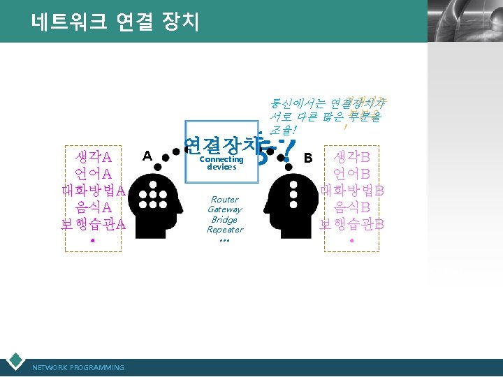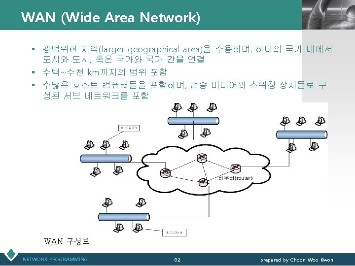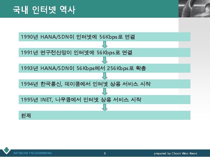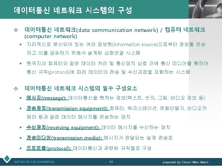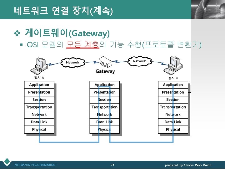 네트워크 연결 장치(계속) NETWORK PROGRAMMING 72 LOGO prepared by Choon Woo Kwon