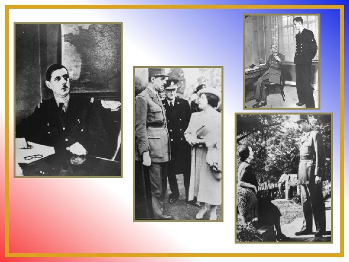 1890 1940 1970 Qu’ont en commun ces trois dates? Elles ont en commun un grand personnage du 20 e siècle : Charles de Gaulle. L’année 2010 marque à la fois le 120 e anniversaire de sa naissance, le 70 e anniversaire de son appel historique à la Résistance et le 40 e anniversaire de sa mort. Il eût été difficile de ne pas souligner ce triple anniversaire. En images et en paroles, voici donc tel qu’en lui-même Charles de Gaulle : hautain, spirituel, drôle, profond, visionnaire, humaniste, poétique… et bien davantage que ne peuvent le résumer ces quelques mots et ce diaporama. (Les photos qui illustrent ce diaporama ne sont pas toujours d’une qualité exceptionnelle. Elles datent d’une époque bien antérieure au numérique. Elles n’en constituent pas moins un témoignage pour l’Histoire. ) R. Day