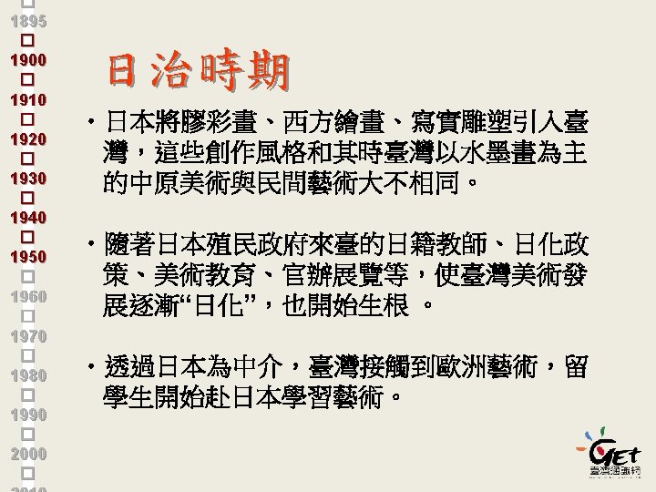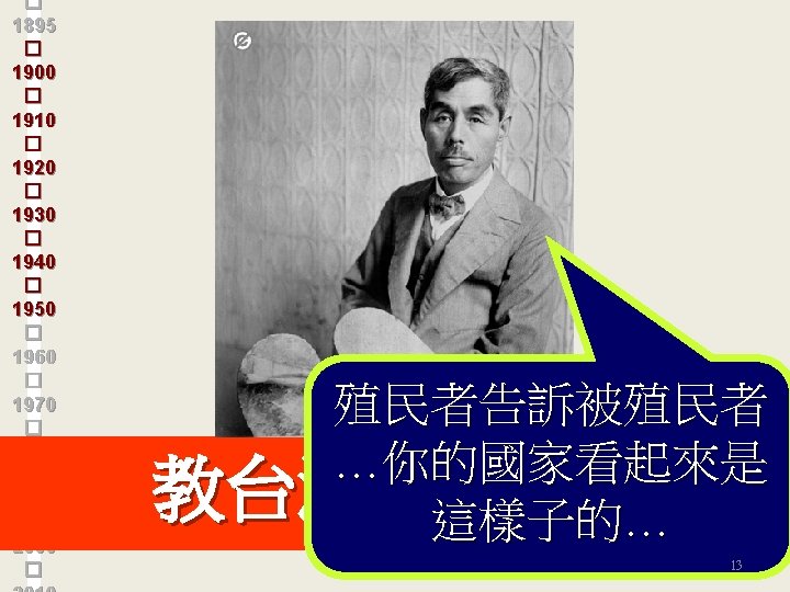 � 1895 � 1900 � 1910 � 1920 � 1930 � 1940 � 1950 � 1960 � 1970 � 1980 � 1990 � 2000 � 教台灣人看台灣 12