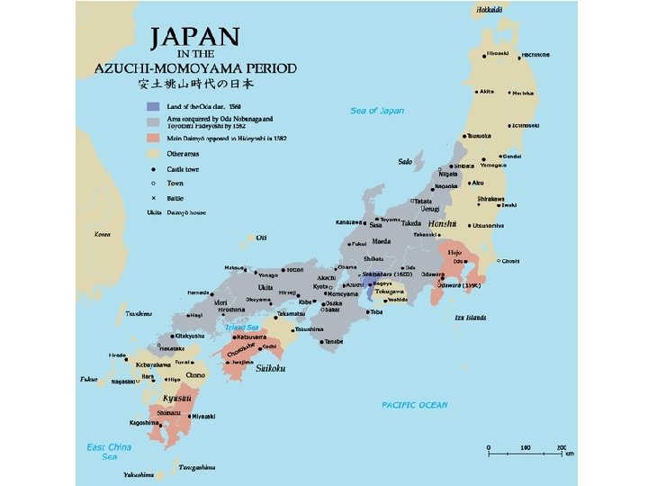 • 1467: Civil war spins Japan in chaos = violence • 1467 -1568: “Warring States” period – Samurai Daimyo rule states – Emperor = figurehead • System resembles Europe – Castles, serfs, local armies, tribute, etc. New Feudalism