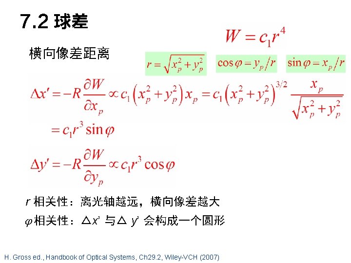 7. 1 像差的起源 透镜的平面坐标定义 r x 2 y 2 p p cos y p r sin x p r H. Gross ed. , Handbook of Optical Systems, Ch 29. 2, Wiley-VCH (2007)
