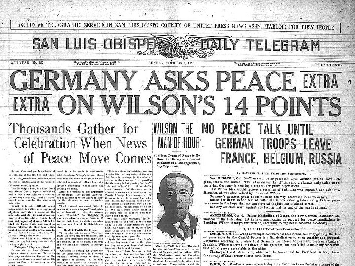Treaty of Versailles Germany agreed to cease fire – not surrender Self – Determination Right for each country to determine own government European Countries Italy did not get land from Austrian Hungarian Empire