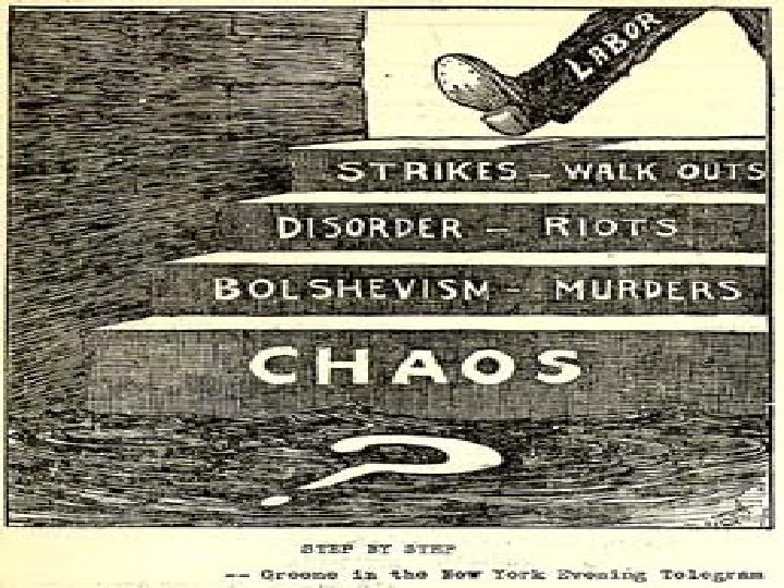 Labor Unrest (pg 594 -595) Strike Boston Police Strike Steel Mill Strike Coal Miners Strike Problems Results