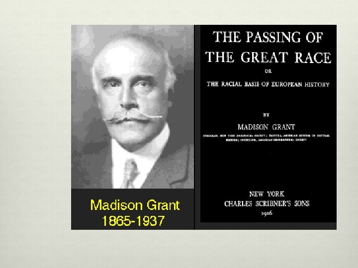 This is a practical, merciful, and inevitable solution of the whole problem, and can be applied to an ever widening circle of social discards, beginning always with the criminal, the diseased, and the insane, and extending gradually to types which may be called weaklings rather than defectives, and perhaps ultimately to worthless race types. -Madison Grant The Passing of the Great Race (1916)