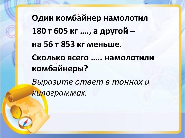 193 2 243 20243 22403 22430 22043 2204 Slides: 21 Download presentation № 193 2 км 243 м 20243 м 22403 м 22430 м 22043 м 2204 м 2204 м 2 км 243 м 20243 м 22043 м 22403 м 22430 м Проверка № 194 3 т 543 кг 3354 кг 3 т400 кг 3534 кг 3453 кг 3 т435 кг 3345 кг 3 т 3 4 2 1 Ссылки: Фон презентации http: //pedsovet. su/load/395 -1 -0 -45125 на 19 слайде http: //likeforyou 2. ru/fon-detskiy-sad-raduga. html Картинки: река Миасс http: //tehhikaramir. livejournal. com/287316. html? thread=4236628 http: //www. kartinki 24. ru/kartinki/chelyabinsk/11348. html картофель http: //naklymbe. com/kartofel-polza-i-vred. html помидоры http: //pngimg. com/download/2702 морковь http: //postimg. org/image/htw 121621/ капуста http: //www. liveinternet. ru/users/3967862/rubric/1595890/ пшеница http: //forskning. no/mat-landbruk-dna/2011/10/bedre-bakst-medhvetegenom http: //sungar. all. biz/pshenica-posevnaya-gg 1059329 овёс http: //green-color. ru/811 -oves-vred-i-polza. html http: //sungar. all. biz/ovesfurazhnyj-g 346093 береза http: //www. metronews. ru/goroda-metro/omichi-vyberut-rastenie-dlja-alleirossii/XKFngb---m 91_sd 2 Lqi_j. Ryuz_u 4 Xu. Q/ осина http: //devyasil. ru/osina-ot-adenomy-prostaty. html замок http: //huaban. com/boards/3972911/ сундук http: //www. clipshrine. com/Two-Chests-One-Open-and-One-Closed-14954 medium. html домашнее задание http: //karaganda. adiso. kz/obrazovanie/reshenie-domashnihzadaniy-i-kontrolnyh-13174 Аудиофайл для физминутки «Мир похож на цветной луг» : http: //xmusic. me/q/ls 28 xb. TR 5 PKR_Yrstvc. Xs 8 WD 5 q. Hnt 8 W 9 z. Eanybfgi 8 Ju 6 f. KY 2 u. D_u. I a. U_Ga. Fy 77 FVIDvu. IWg_Ynpm 9 SUy-H 6 R 4 n 8 s 8_j 9 w/