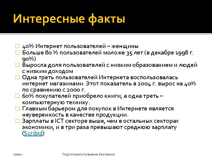 Сайты �Organisation for Economic Co-operation and Development (OECD) �Wikipedia, the free encyclopedia (Wikipedia) �The World Bank (WB) 2009 г. Подготовила Кузьмина Екатерина