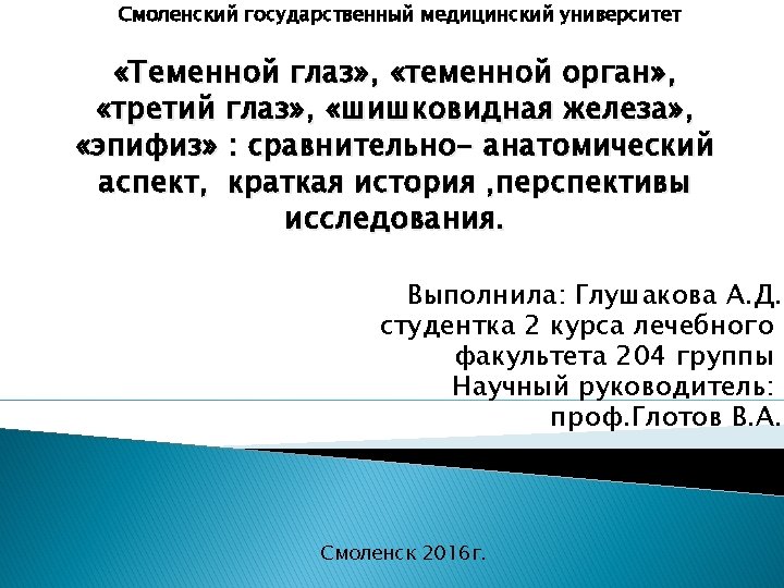 � � � � � � � Janvier P. Skull of Jawless Fishes // The Skull / J. Hanken, B. K. Hall. — University of Chicago Press, 1993. — Vol. 2: Patterns of Structural and Systematic Diversity. — P. 152– 188, 216. Woodward A. S. Outlines of Vertebrate Paleontology for Students of Zoology. — Cambridge University Press, 1898. — P. 67– 68, 78, 177– 178, 191– 193, 196, 224– 225. Olson E. C. Evolution, Brain and Behavior: Persistent Problems / R. B. Masterton, W. Hodos, H. J. Jerison. — Lawrence Erlbaum Associates, 1976. — Vol. 2. — P. 62 Gladstone, Wakeley, 1940, The pineal system of the class Pisces, pp. 200– 204 Woodward A. S. (1922). «Observations on Crossopterygian and Arthrodiran Fishes » . Proceedings of the Linnean Society of London 134 session: 31. Edinger, 1955, Foramen and skull, pp. 19– 29 Eakin, 1973, Outmoded Thermostat, pp. 27– 30 Foster R. G. , Roberts A. (1982). «The Pineal Eye in Xenopus laevis Embryos and Larvae: A Photoreceptor with a Direct Excitatory Effect on Behaviour» . Journal of comparative physiology 145 (3): 413– 419. Horváth G. , Varju D. Polarized Light in Animal Vision: Polarization Patterns in Nature. — Heidelberg: Springer-Verlag, 2004. — P. 317– 330 Tilney, Warren, 1919, The development of the epiphyseal complex in selachians, pp. 41– 48 Nichols S. The Primal Eye. — 2006. — P. 115– 137. Kielan-Jaworowska Z. , Cifelli R. , Luo Zhe-Xi. Mammals From The Age Of Dinosaurs: Origins, Evolution, And Structure. — Columbia University Press, 2004. — P. 131– 132. Forey P. L. History of the Coelacanth Fishes, 1998, Natural history of Latimeria, p. 18 Gladstone, Wakeley, 1940, The eyes of amphibians, pp. 224– 234 Takahama H. (1993). «Evidence for a frontal-organ homologue in the pineal complex of the salamander, Hynobius dunni» . Cell and Tissue Research (Springer-Verlag) 272(3): 575– 578. 2003, Cajochen, NEL, Role of melatonin in the regulation of human circadian rhythms and sleep. Gladstone, Wakeley, 1940, Notes on the pineal system of special examples of living saurian reptiles, pp. 271– 284 1994, Lesnikov VA, Ann N Y Acad Sci. , Pineal Cross-transplantation (old-to-young and vice versa) as evidence for an endogenous “aging clock” (Pierpaoli, 1994, Proc Natl Acad Sci U S A. , Pineal control of aging: effect of melatonin and pineal grafting on aging mice ). (Pierpaoli 1991, Ann N Y Acad Sci. , Pineal control of aging: effect of melatonin and pineal grafting on the survival of older mice Joss J. M. P. (1985). «The Pineal Gland in the Lamprey» . Current Trends in Comparative Endocrinology: Proceedings of the Ninth International Symposium on Comparative Endocrinology (Kent State University Press) 2: 637– 640. Beard J. (1888). «Memoirs: Morphological Studies. I. The Parietal Eye of the Cyclostome Fishes» . Quarterly Journal of Microscopical Science 29 (2): 55– 74 Dendy A. (1907). «On the parietal sense-organs and associated structures in the New Zealand Lamprey ( Geotria australis). » . Quarterly Journal of Microscopical Science 51 (201): 1– 29. Tilney, Warren, 1919, The comparative anatomy and histology of the epiphyseal complex in cyclostomes. pp. 80– 92 Shukla A. N. Hormones Of Fishes. — New Delhi: Discovery Publishing House, 2009. — P. 69– 80. Edinger, 1955, Introduction, pp. 3– 6 Bertolucci C. , Foà A. (2004). «Extraocular Photoreception and Circadian Entrainment in Nonmammalian Vertebrates» . Chronobiology International 21 (4– 5): 501– 519 Beltrami G. , Bertolucci C. , Parretta A. , Petrucci F. , Foà A. (2010). «A sky polarization compass in lizards: the central role of the parietal eye» . The Journal of Experimental Biology 213: 2048– 2054. � Rozhok A. Orientation and Navigation in Vertebrates. — Heidelberg: Springer-Verlag, 2008. Labra A. , Voje K. L. , Seligmann H. , Hansen T. F. (2010). «Evolution of the third eye: a phylogenetic comparative study of parietal-eye size as an ecophysiological adaptation in Liolaemus lizards» . Biological Journal of the Linnean Society 101 (4): 870– 883. Klein D. C. (2006). «Evolution of the vertebrate pineal gland: the AANAT hypothesis» . Chronobiology International 23 (1&2): 5– 20 Ralph C. L. , Firth B. T. , Turner J. S. (1979). «The Role of the Pineal Body in Ectotherm Thermoregulation» . American Zoologist 19 (1): 273– 293. Stebbins R. C. , Wilhoft D. C. Influence of the Parietal Eye on Activity in Lizards // The Galápagos: Proceedings of the Symposia of the Galápagos International Scientific Project / R. � Tilney, Warren, 1919, The development of epiphyseal complex in Aves, pp. 67– 68 � � � � � I. Bowman. — University of California Press, 1966. — P. 258– 268. Krabbe K. H. (1955). «Development of the pineal organ and a rudimentary parietal eye in some birds» . Journal of Comparative Neurology 103 (1): 139– 149. Kurochkin E. N. , Dyke G. J. , Saveliev S. V. , Pervushov E. M. , Popov E. V. (2007). « A fossil brain from the Cretaceous of European Russia and avian sensory evolution » . Biology Letters 3 (3): 309– 313. The Pineal Gland of Vertebrates Including Man, 1979, Vollrath L. Comparative Morphology of the Vertebrate Pineal Complex, pp. 25– 38 Gladstone, Wakeley, 1940, Pigmentation of the pineal region in birds, pp. 75– 76 Gladstone, Wakeley, 1940, The pineal system of Ophidia, pp. 284– 285