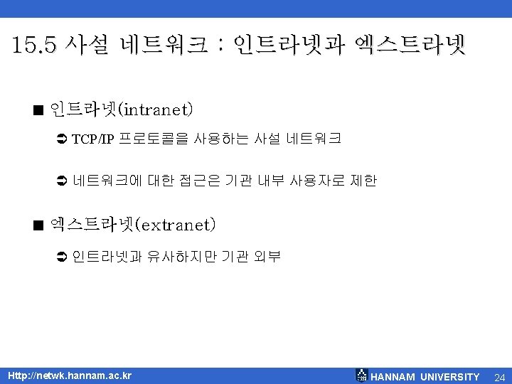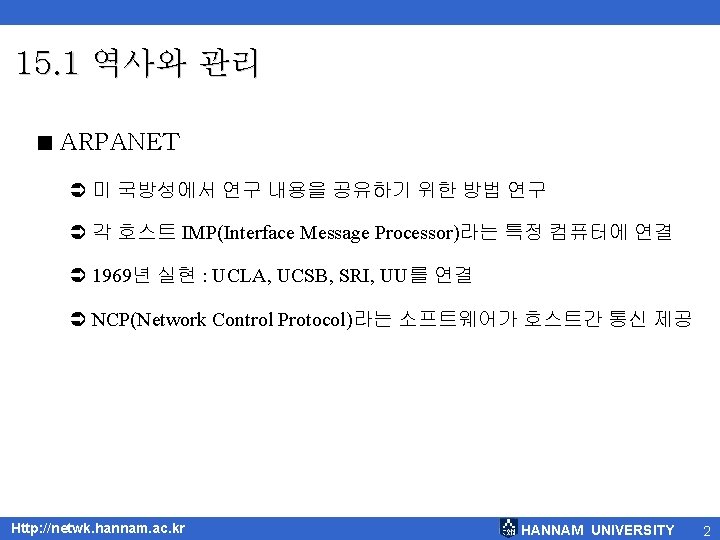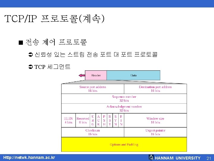 15. 2 TCP/IP 프로토콜 < TCP/IP 프로토콜 Http: //netwk. hannam. ac. kr HANNAM UNIVERSITY 14
