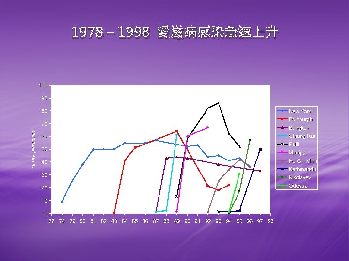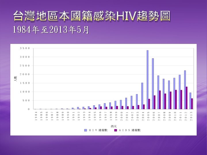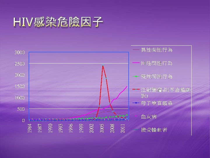 台灣愛滋病感染爆發流行 1984 - 2008 HIV AIDS § Cumulative HIV cases: 16, 748 § Cumulative AIDS cases: 5 , 1 8 3 § Cumulative AIDS deaths: 2, 199