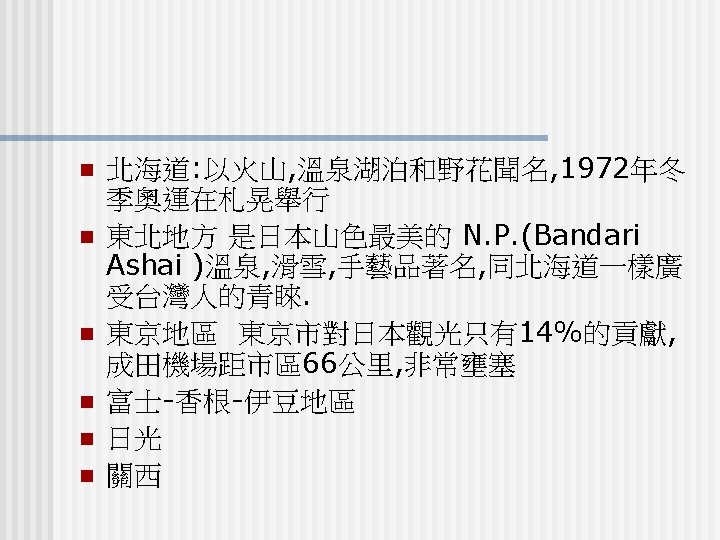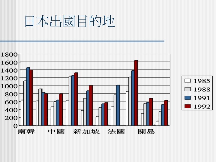 印尼 inbound 年 /千人 1992 地區 Singapore 809. 144 Japan 394. 693 Malaysia 338. 049 Australia 234. 723 Taiwan 220. 326 USA 125. 337 Germany 118. 244 UK 117. 826 Netherlands 86. 034 Republic of Korea 82. 526 Others - TOTAL 3064. 161