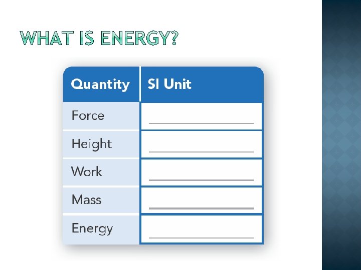 ENERGY! � Work is done when a force that is applied to an object moves that object � Transfer of energy � Measured joules in