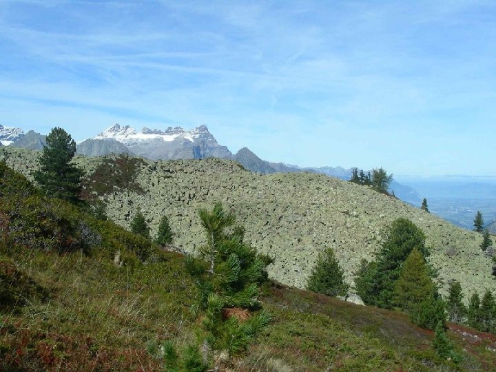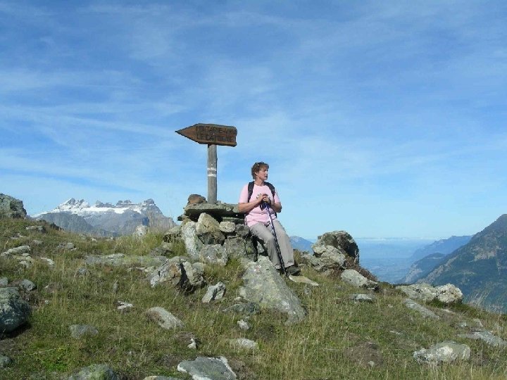 Nous arrivons gentiment à la fin de notre première partie. Il est temps pour nous de reprendre un peu le souffle Car le plus dur est à venir. Nous allons traverser la montagne Vria qui est en contre -bas du Catogne Et c’est en admirant les Dents Du Midi avec son petit duvet de neige. Que nous allons traverser ce pierrier Et attaquer la grande montée pour atteindre le sommet.