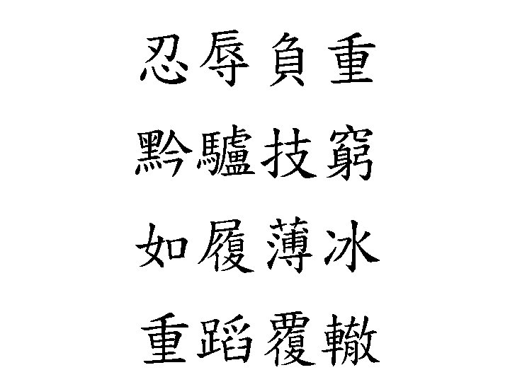 (1)ren 3 ru 3 fu 4 zhong 4 忍辱負重 (2) ren 3 ru 4 fu 4 zhong 4 忍辱負重